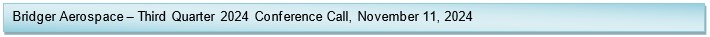 Good day, everyone, and welcome to today’s Bridger Aerospace Third Quarter 2024 Conference Call.