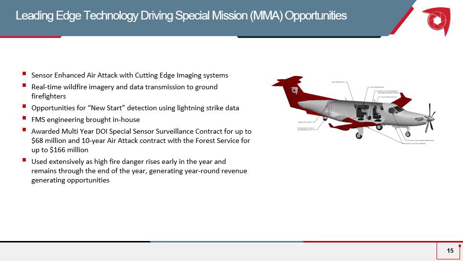 Leading Edge Technology Driving Special Mission (MMA) Opportunities 15 ▪ Sensor Enhanced Air Attack with Cutting Edge Imaging systems ▪ Real - time wildfire imagery and data transmission to ground firefighters ▪ Opportunities for “New Start” detection using lightning strike data ▪ FMS engineering brought in - house ▪ Awarded Multi Year DOI Special Sensor Surveillance Contract for up to $68 million and 10 - year Air Attack contract with the Forest Service for up to $166 million ▪ Used extensively as high fire danger rises early in the year and remains through the end of the year, generating year - round revenue generating opportunities